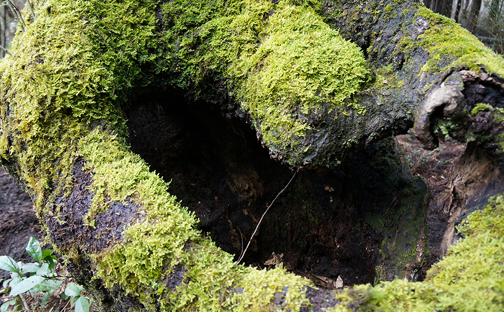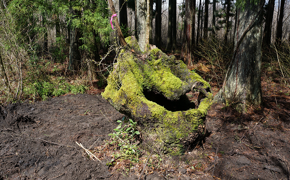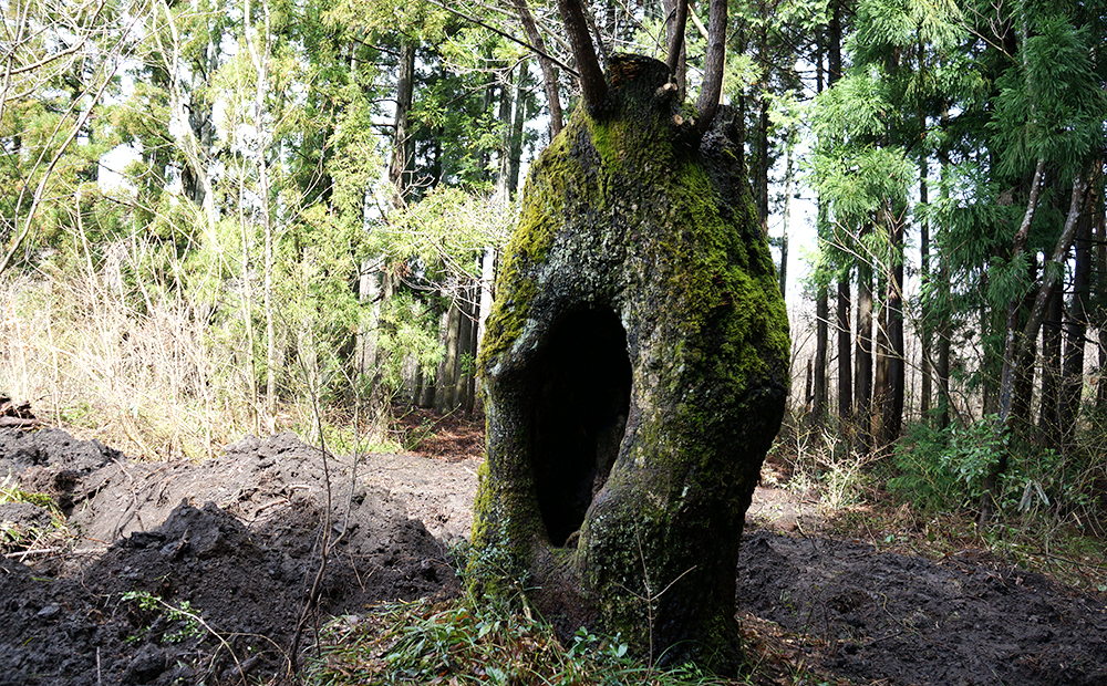 この穴は伐った部分が朽ちて崩れ落ちてできたものです。
