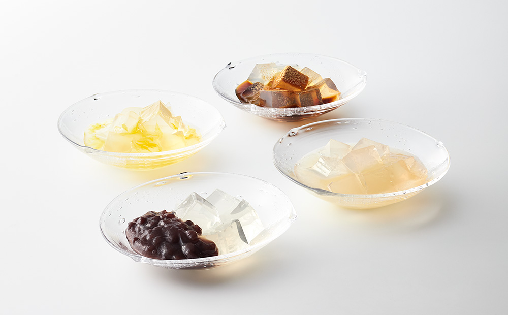 2009年より販売をスタートしたたねや寒天は、職人が炊き上げるなめらかな餡やソースを合わせてお楽しみいただく夏季限定商品。口のなかでくずれる瞬間が一番おいしくなるよう大きさや固さに工夫をかさね、はじけるような寒天の食感と素材の組み合わせでお届けしています。