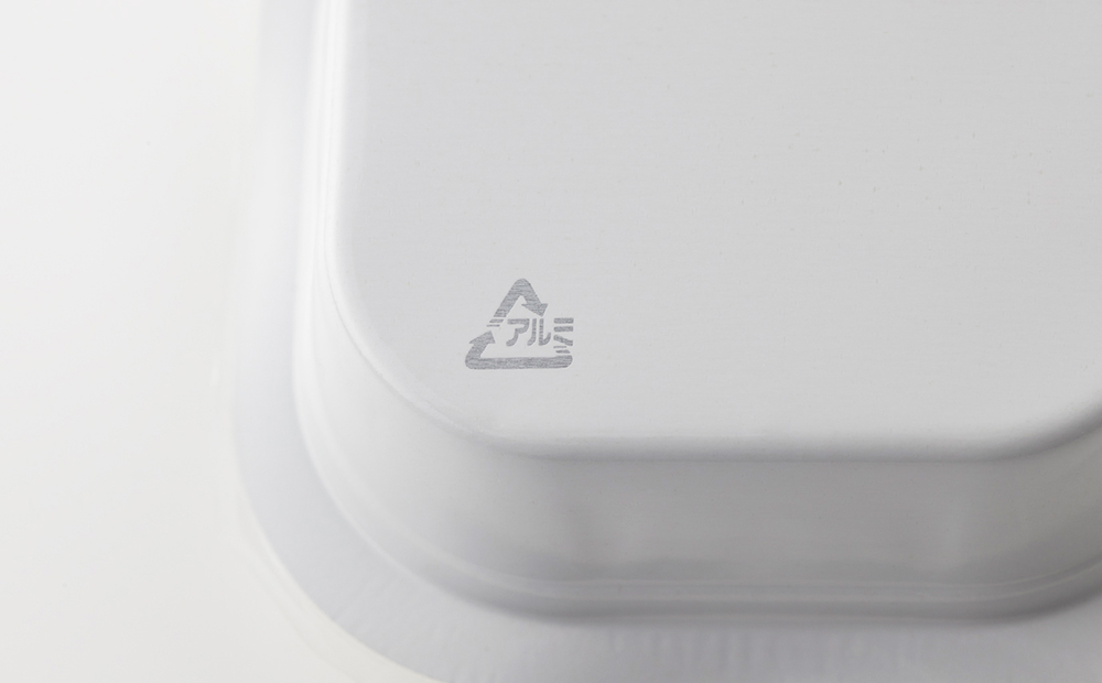 アルミは⾼温で溶かし何度もリサイクルできるという特徴を持ち、アルミの使⽤量が増えると、より再⽣の効果は⼤きくなります。使⽤後のアルミ容器をリサイクルし、再⽣することで資源の有効利⽤につなげていきます。