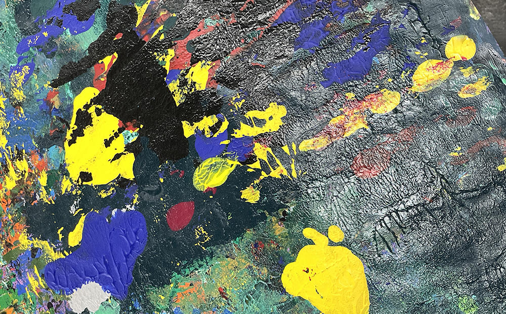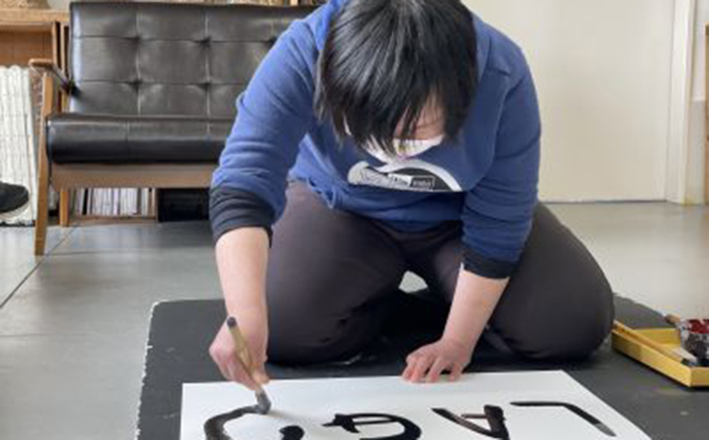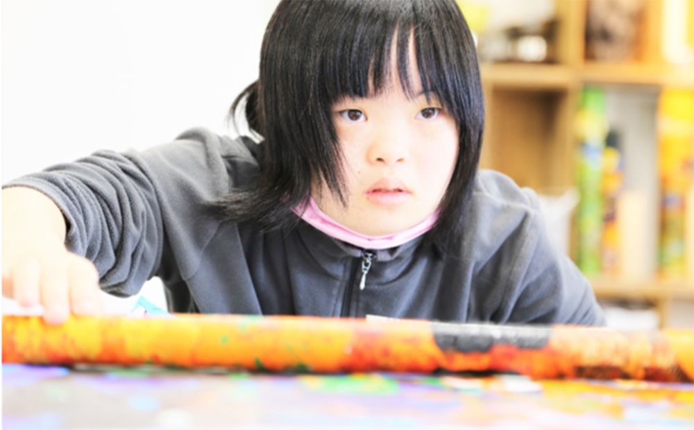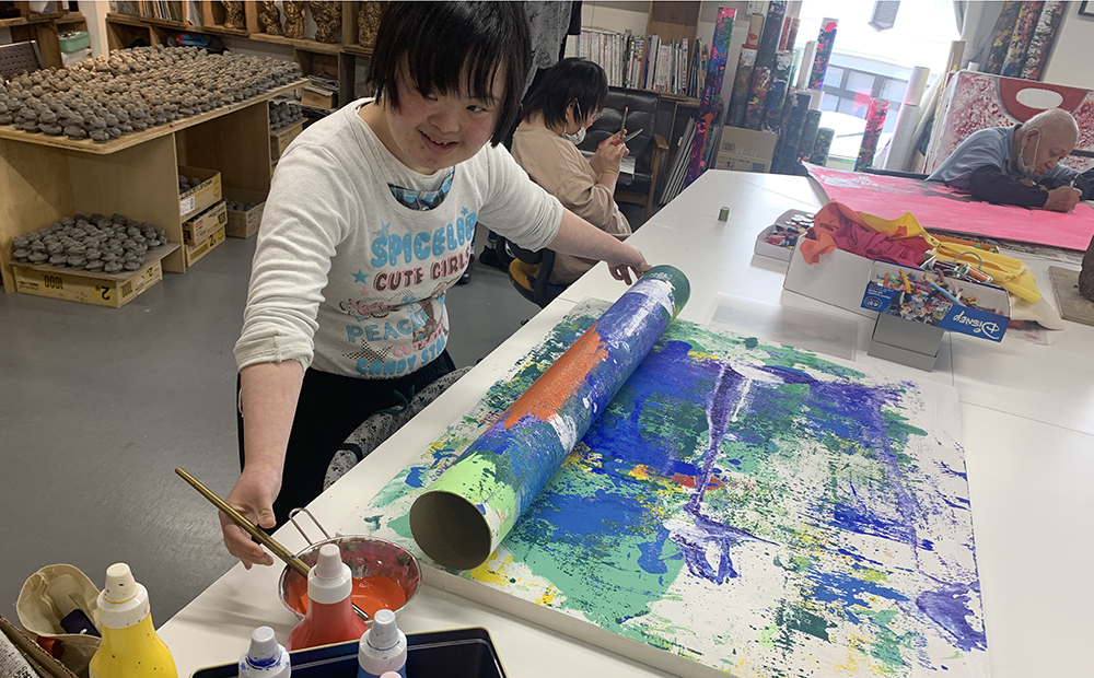 私たちがお会いした日も大きなキャンバスにむかって、楽しそうに作品作りに取り組まれていました。豊かな感性で制作される姿に、すっかり見入ってしまいます。