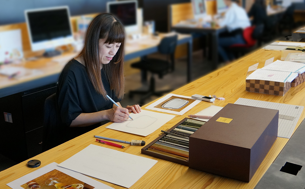 数ある仕事の中でメニュー作りもディスプレイの仕事です。川阪さんは、入社当初からイラストを任されています。