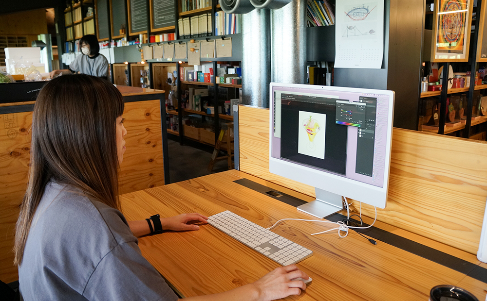 展示替え準備や、POP制作、食品サンプル依頼など、多岐にわたる仕事の合間を見ながらイラストの作業を進めていきます。