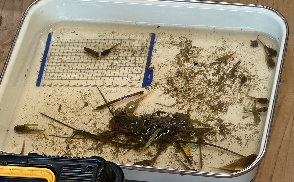 どんな生き物がいたのか、白いトレイに入れて観察しました。