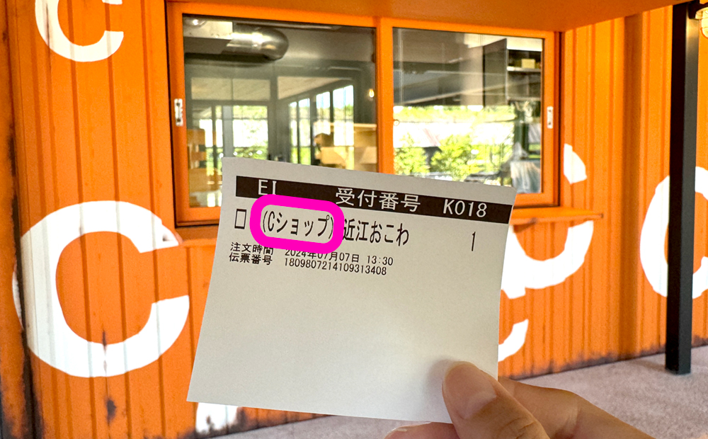 店舗のアルファベットが書かれたレシートが発行されますので、各ショップに商品を取りにお越しください。