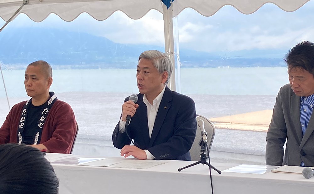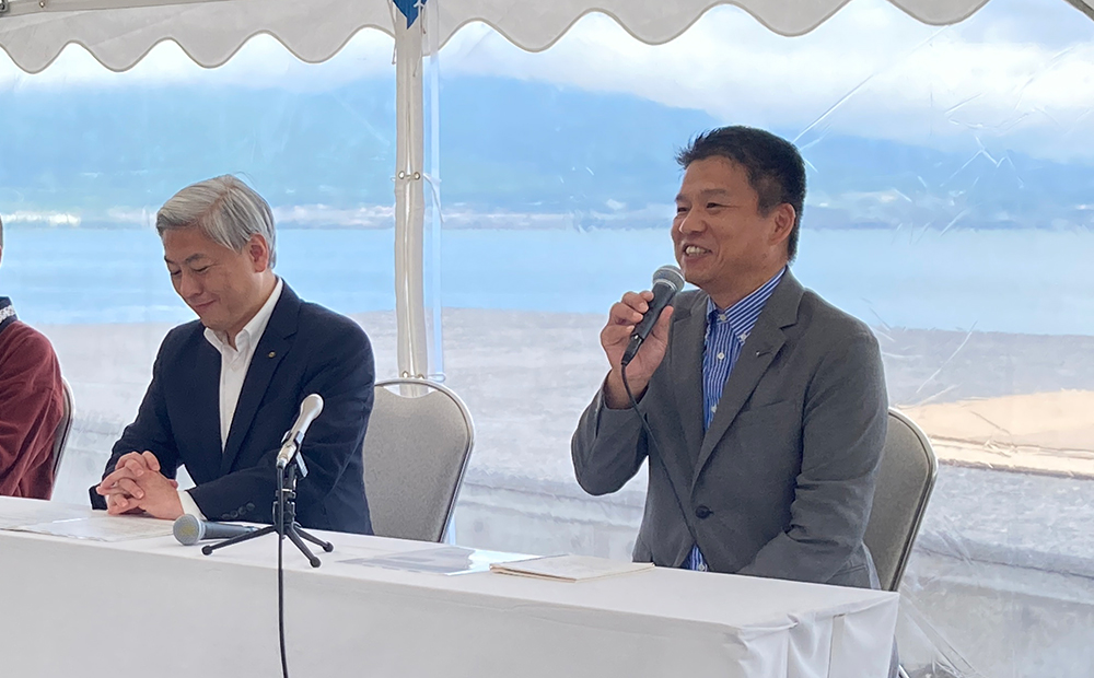 上棟式のあとには大津市長 佐藤健司様、成安造形大学 教授 副学長 加藤賢治様、写真家 今森光彦様とともにLAGO 大津 共同記者発表会を行いました。