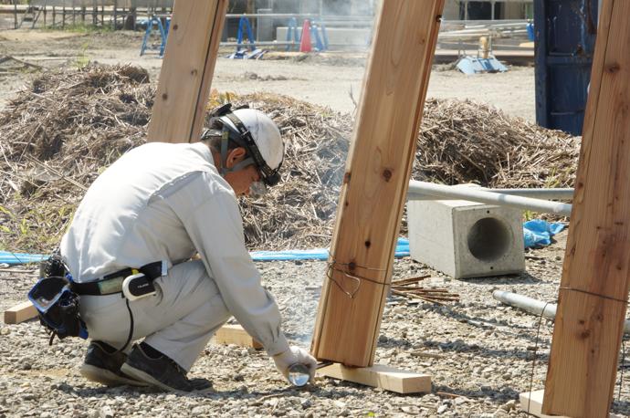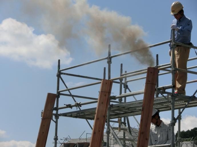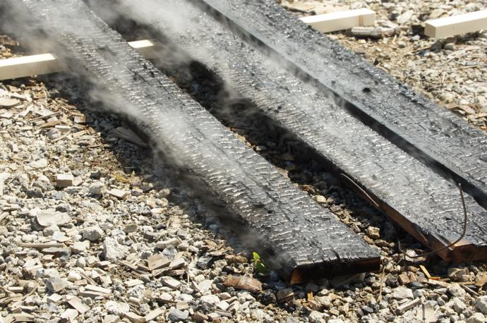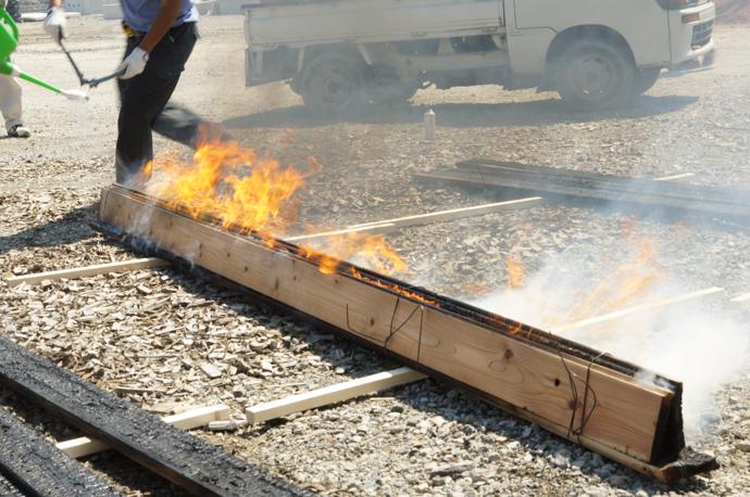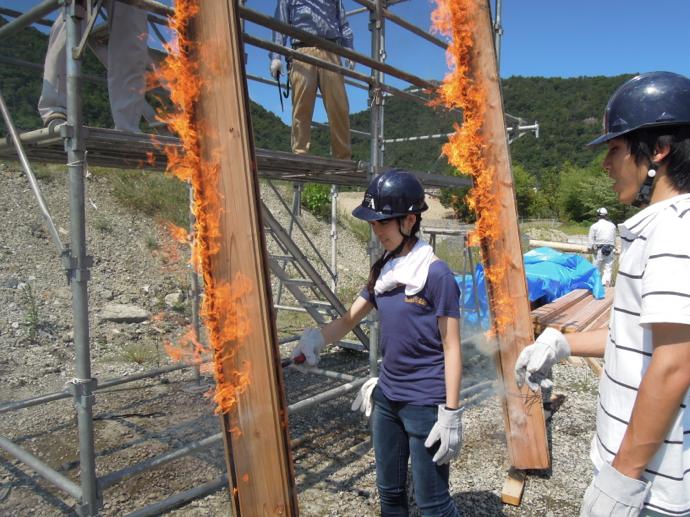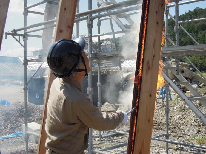 「意外に不思議な技術で、下から上まで均質に焼けます。木材の性質上、一旦赤く炭になると伝熱しない。酸素もないからあまり進まなくて、新しい領地を求めてどんどん炎が上に行きます」と、藤森先生。