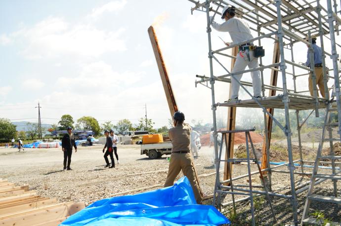 藤森照信先生によるワークショップ第二弾「焼杉」。メインショップの外壁の一部に使用される焼杉を、建築を学ぶ学生さんたちと共に製作しました。