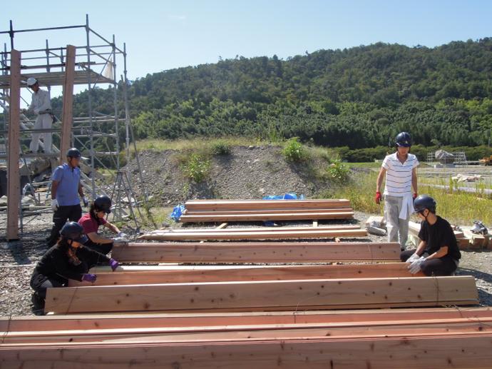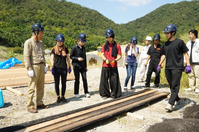「簡単にできることに驚きました。建物に使われると思うとすごく嬉しいです」と声を弾ませる学生さん。彼らから飛び出す質問にも、藤森先生は一つひとつ丁寧に答えてくださいました。