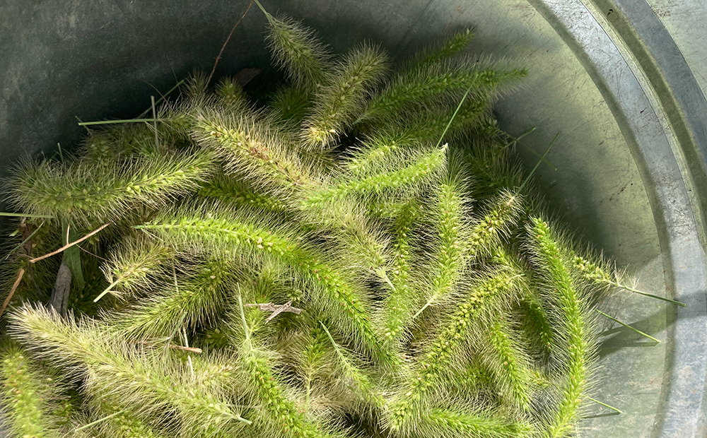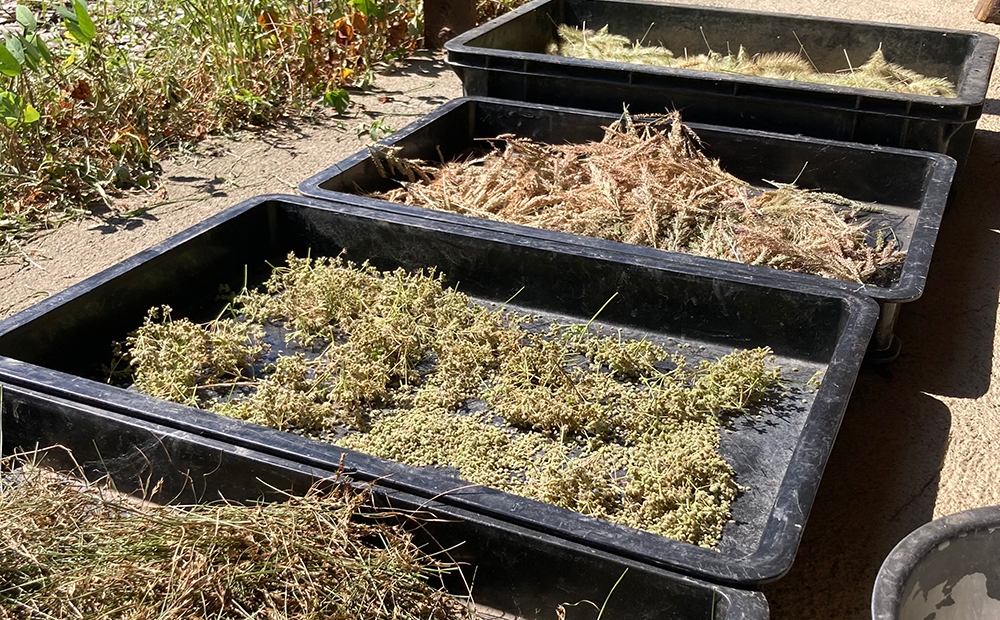 野草の成長の様子を観察し、種を採りたい野草だけ草刈りをせずに残しておいて、種が熟したタイミングを狙ってバケツを持って種を採りにまわります。そして採った種は乾燥させます。