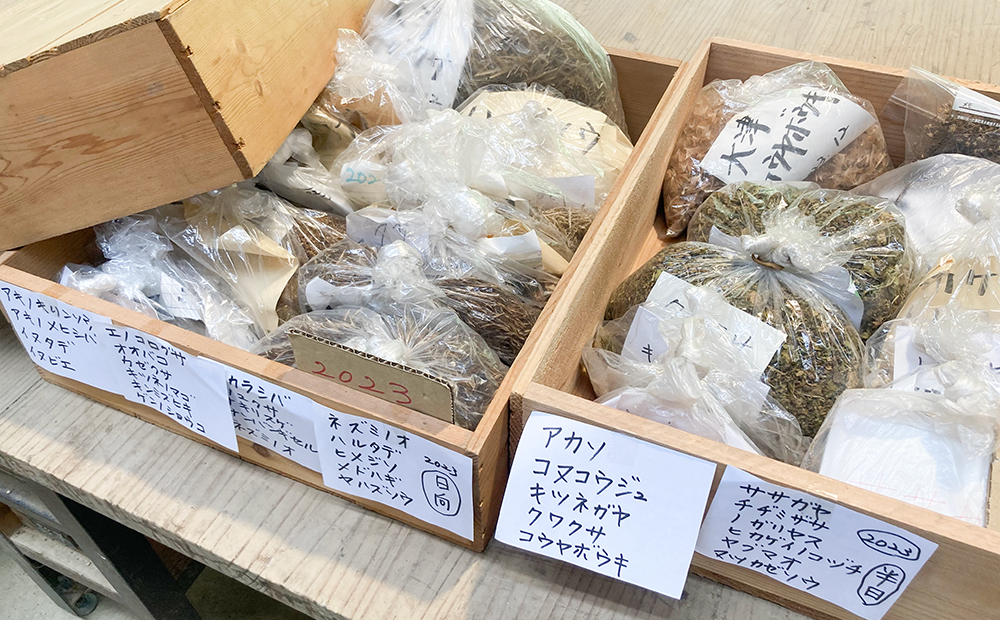 その内、キャンディーファームでは今までに、古くからこの辺りに生えている在来種の野草100種類以上の種を集めました。