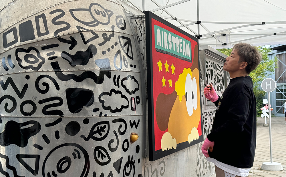 10月28日、ラ コリーナ近江八幡にてイラストレーターくぜさえさんによる「エアストリーム ライブペイント」が行われました。