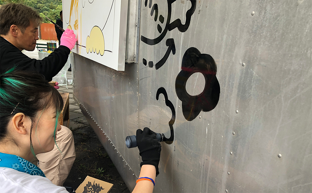 何もなかったキャンバスと車体がどんどん彩られていく様子に足を止められるお客様も多く、スタッフも含め周囲は夢中の様子でした。