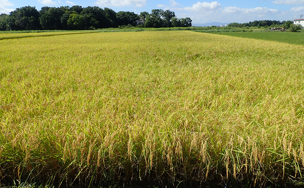 南花沢営農組合さんでは、田んぼの周りの草刈りや田んぼ内の雑草除去をこまめに行い、害虫や雑草の被害が少ないたっぷりお米が詰まったきれいな穂が実りました。