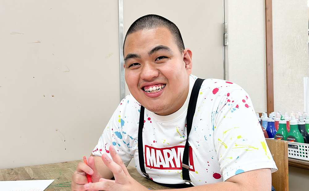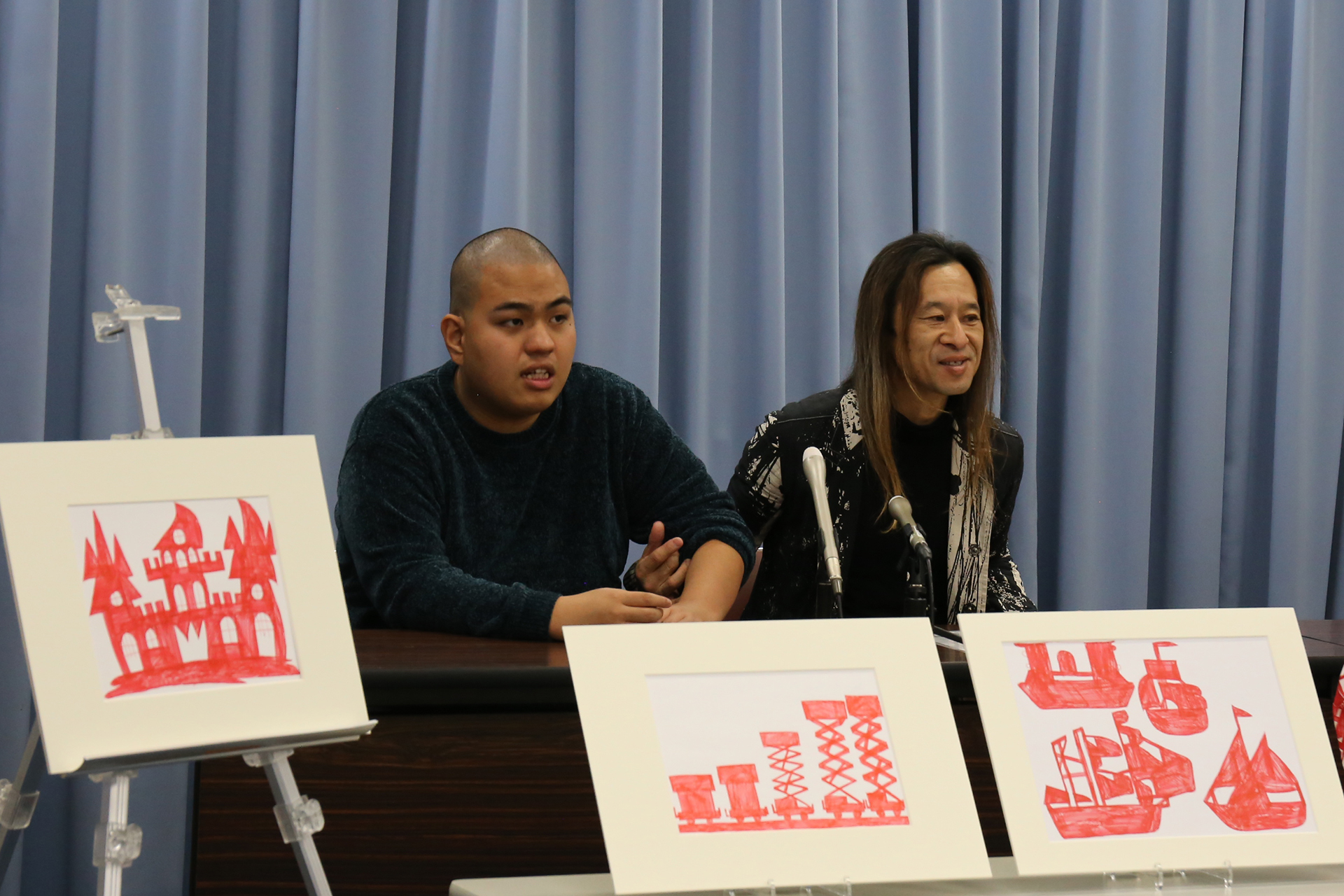 ▲左からアーティスト 小川翔陽様、やまなみ工房 山下完和施設長