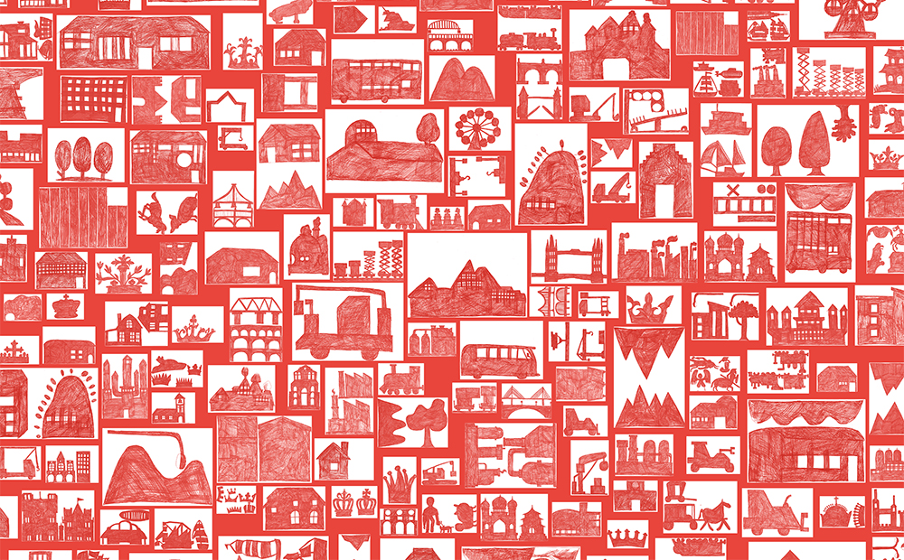 2年目のアーティスト 小川翔陽様の作品は鮮やかな赤色のボールペンで描かれ、繊細ながら力にあふれています。多くの作品をお楽しみいただけるよう約240点の作品を採用し、ひとつに組み合わせました。