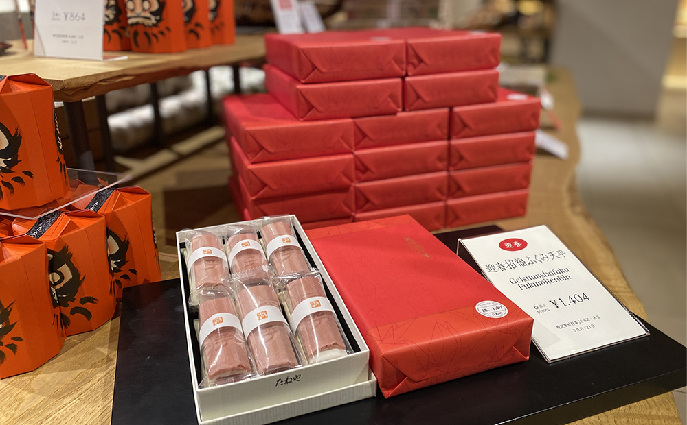 また、12月下旬から「招福ふくみ天平」6個入については御年賀の短冊つき包装紙もご用意いたします。ご用途にあわせお選びください。