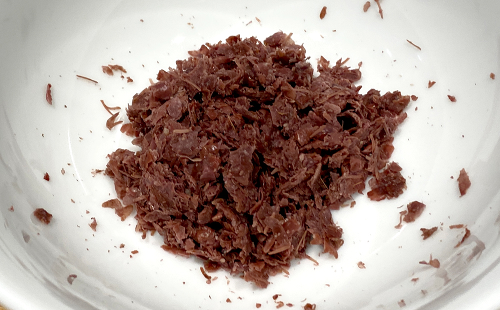 和菓子には欠かせないこし餡の製造過程に小豆皮が残さとして排出されます。この小豆皮はきれいな小豆色をしており、食物繊維も豊富です。以前からこの小豆皮が原材料となり新たなお菓子を作れないかと社内では様々な取り組みをしてきました。