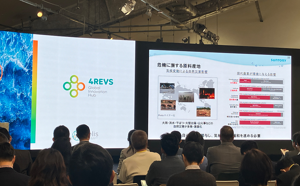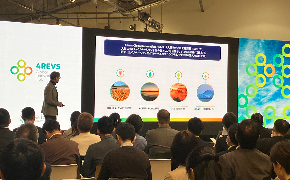 その活動一つ4Revs(フォーレブス)では世界が直面する「4つの生存課題」である、食糧・水・資源・エネルギーの領域で日本企業と世界各地の社会起業家、サステナビリティの実践者と協働する共創的なエコシステムの構築を目指しています。