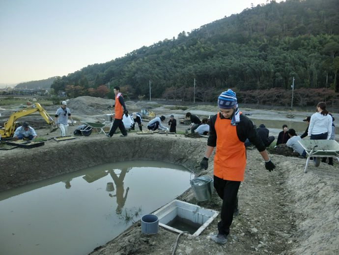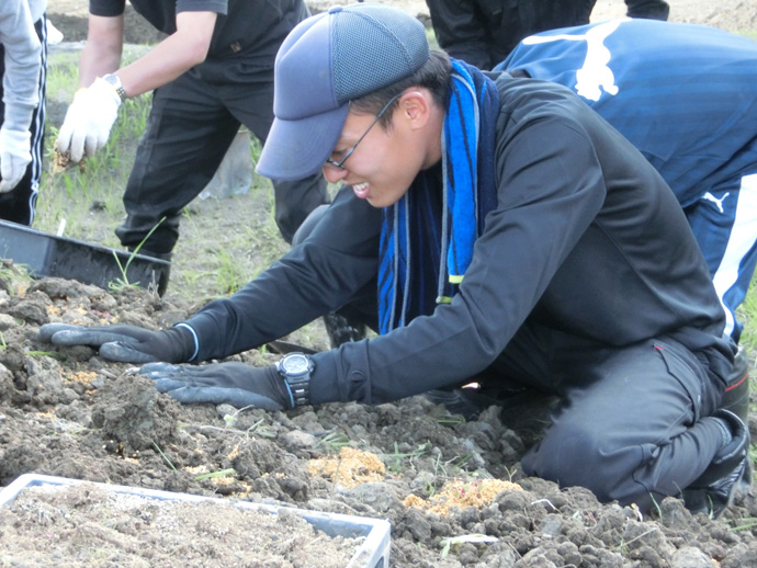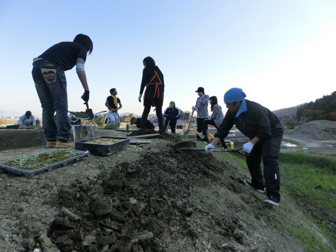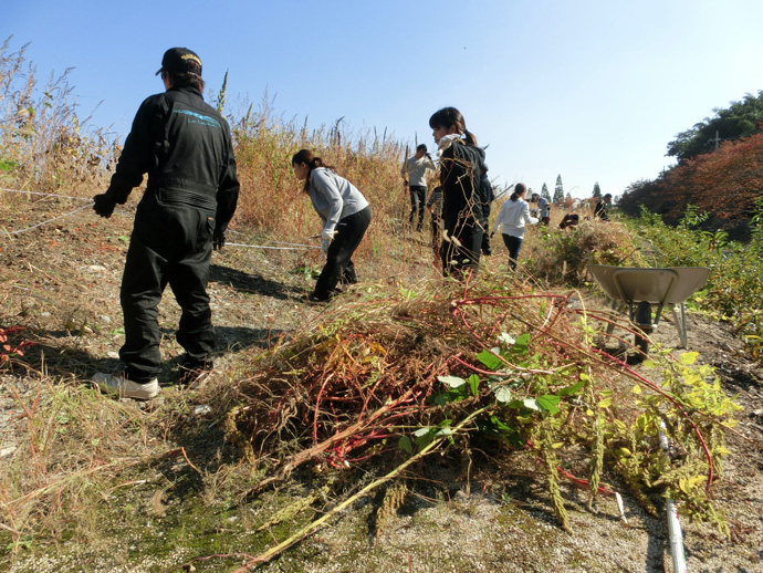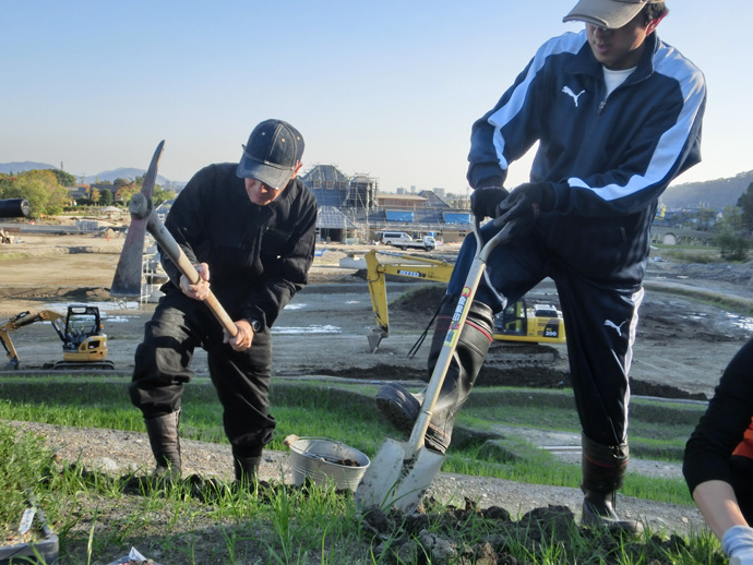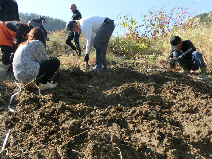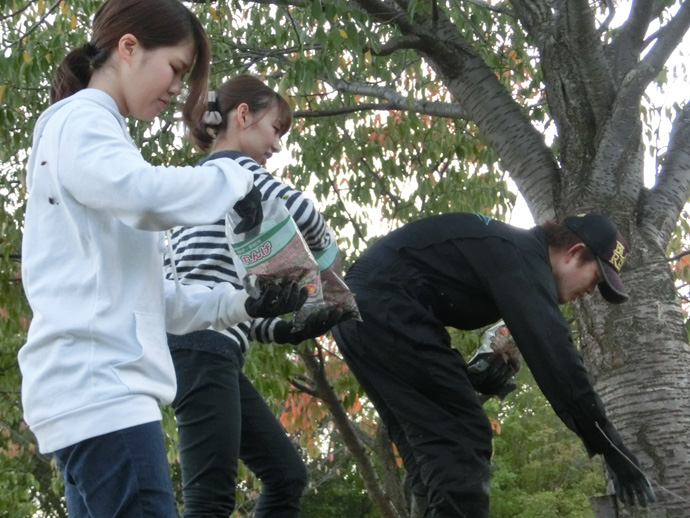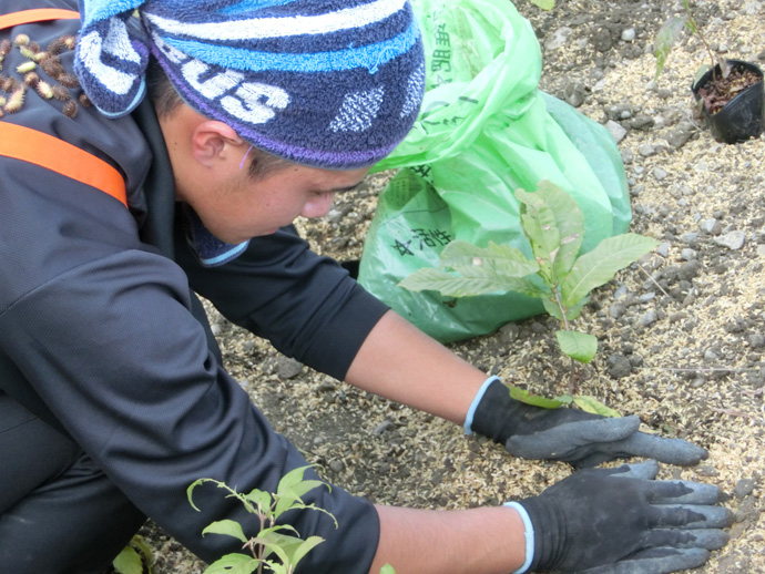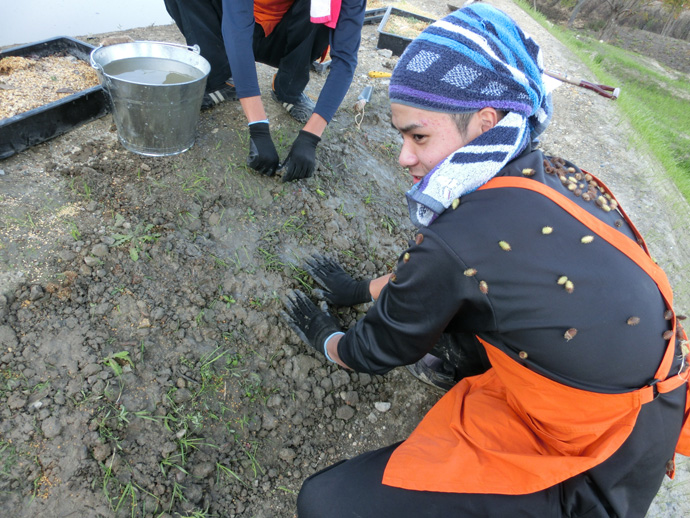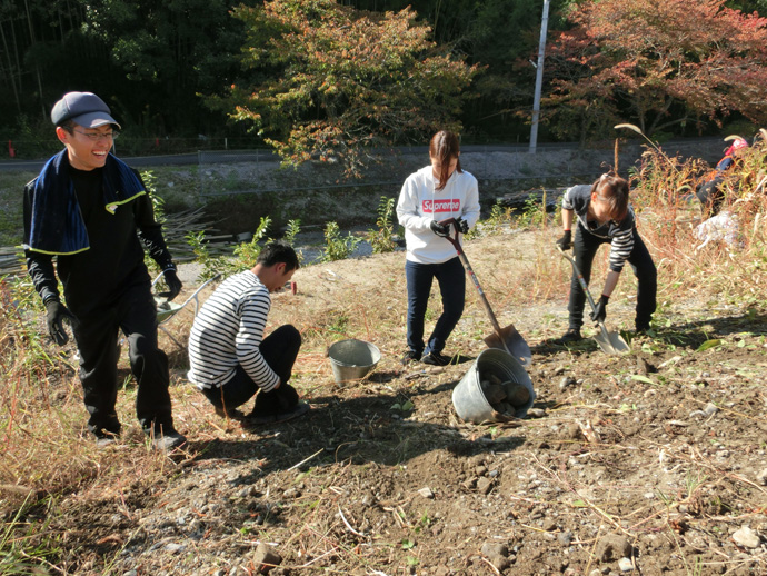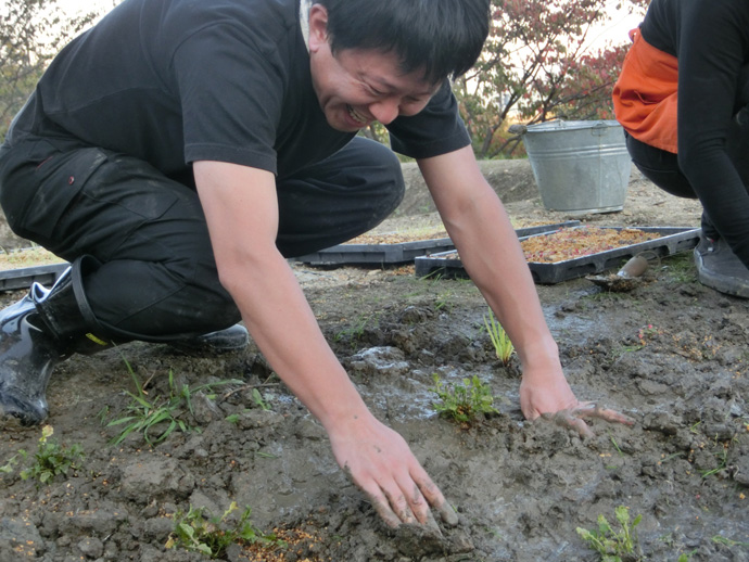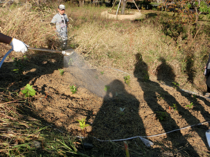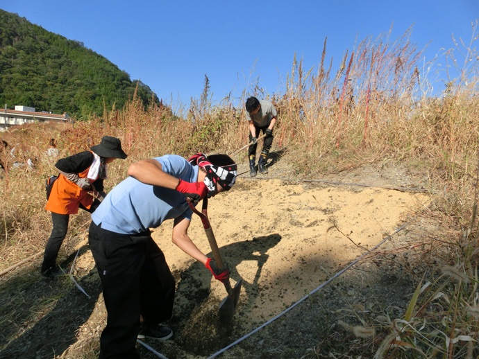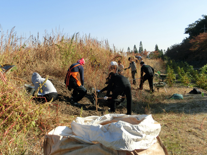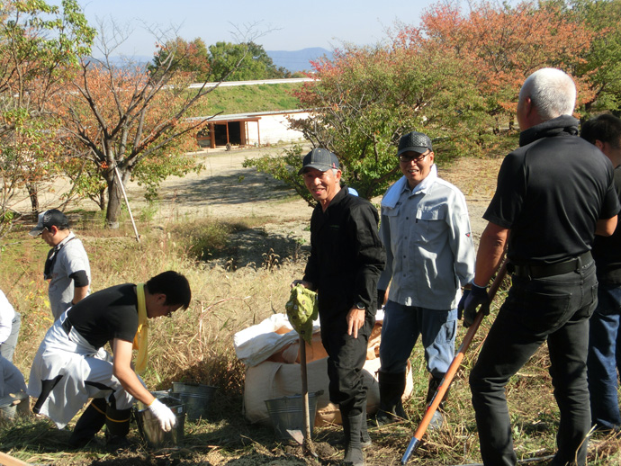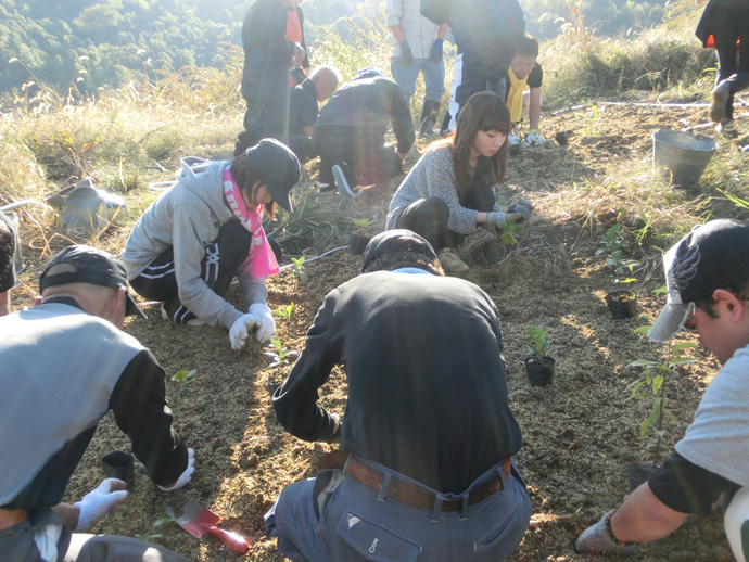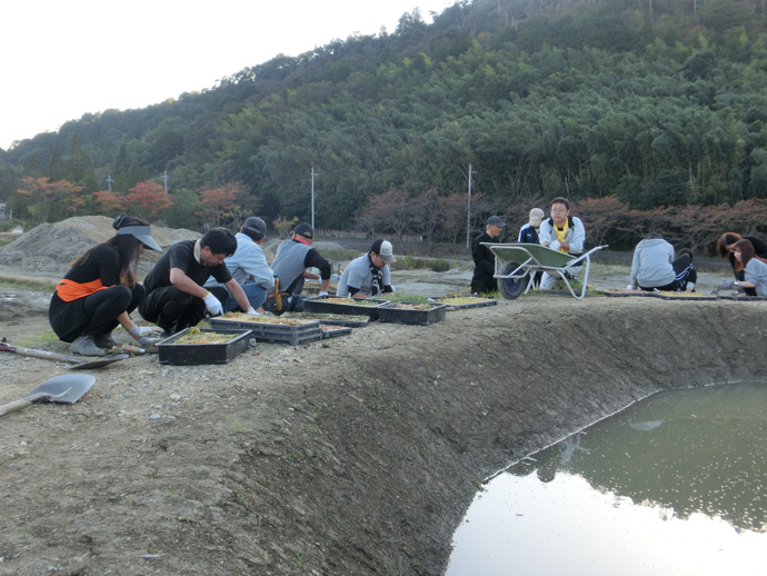 秋のどんぐりプロジェクト第一弾は約30名のスタッフが参加しました。 今回植栽する苗について事前に勉強をし、常緑樹13種27本、落葉樹9種27本を5区画に、計135本の苗を植えました。 また、ラ コリーナ近江八幡中央の棚田一段目斜面に“あぜ道に生える雑草”を植えたり、北之庄菜園と付近の道に春にきれいなレンゲ畑がお目見えするよう、種撒きも。それぞれの成長が楽しみです!