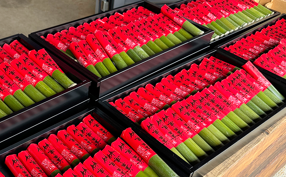 左義長まつりの風物詩、たねやの「竹羊羹」。