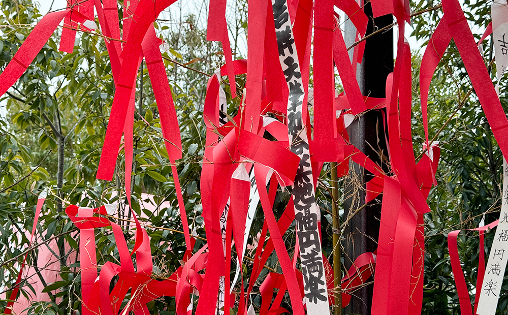 左義長まつりにかかせない赤紙も会場を彩ります。
