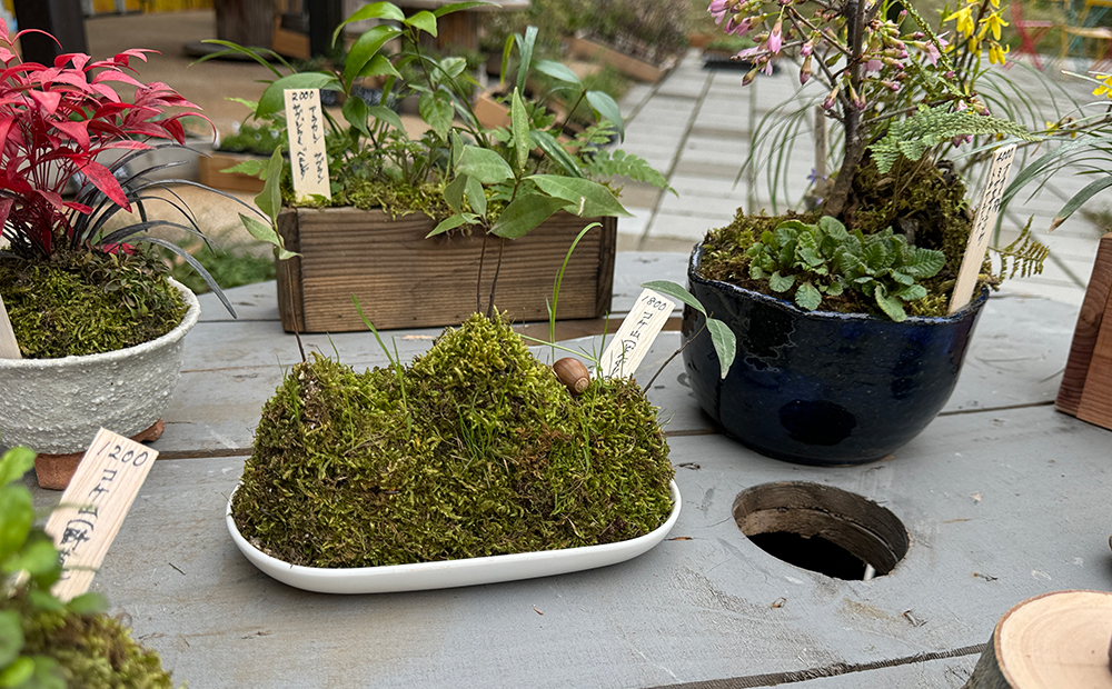 中には草屋根の形をした寄植えも!
