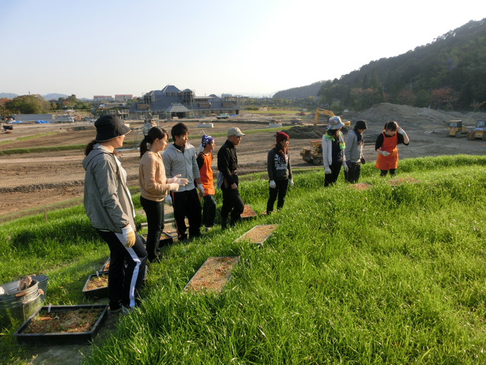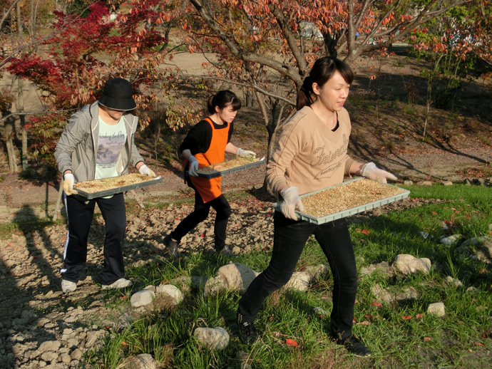 今年最終のどんぐりプロジェクトは20名程で落葉樹81本の苗植えと、以前植えた苗の植え替え、どんぐり拾いを行いました。今年植えた苗は全部で常緑樹2,381本、落葉樹762本。ラ・コリーナ近江八幡の森づくり、どんぐりプロジェクトはこれからも続きます。