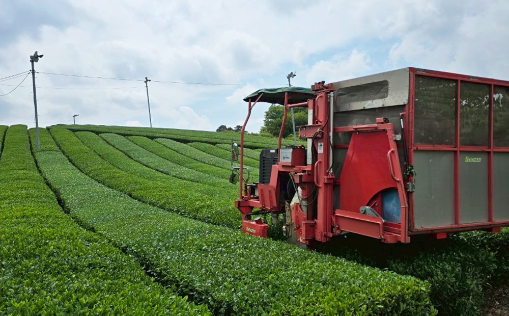 うぐいすが鳴く素敵な茶畑で今年の一番茶の収穫を行うとのことで、滋賀県甲賀市にある「グリーンティ土山」へ見学に伺いました。