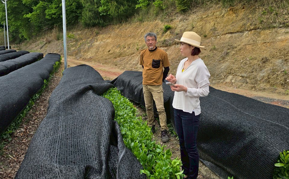 木全体に覆いを被された新芽はテアニンをたっぷりふくんでいるとのことで、柔らかい葉っぱの中から爽やかな香りと茶葉の甘みを感じました。