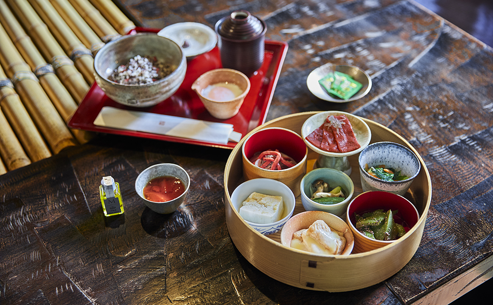 日牟禮乃舍はたねやで唯一、食事が味わえる店舗です。近江の糯米を使用したおこわと地元の食材を活かしたおばんざいをご用意しております。