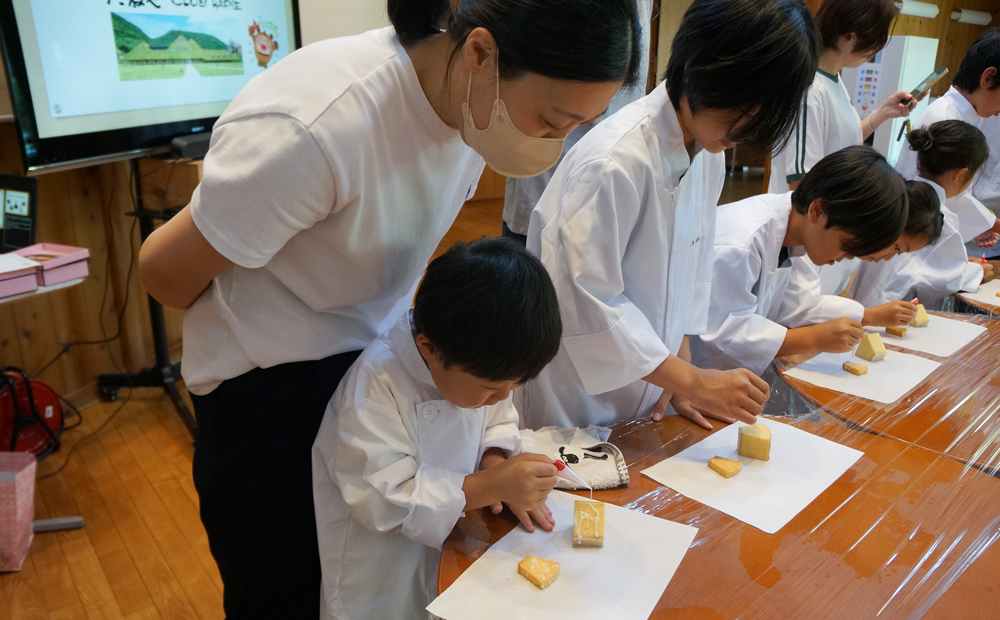 工場見学の後、今度は自分たちが「バームクーヘンとドライバームのアイシング」を体験しました。