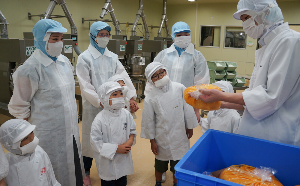 そんな想いから「子ども参観日」を開催し、普段なかなかみられない「工場」のお仕事について10組の親子に参加いただきました。