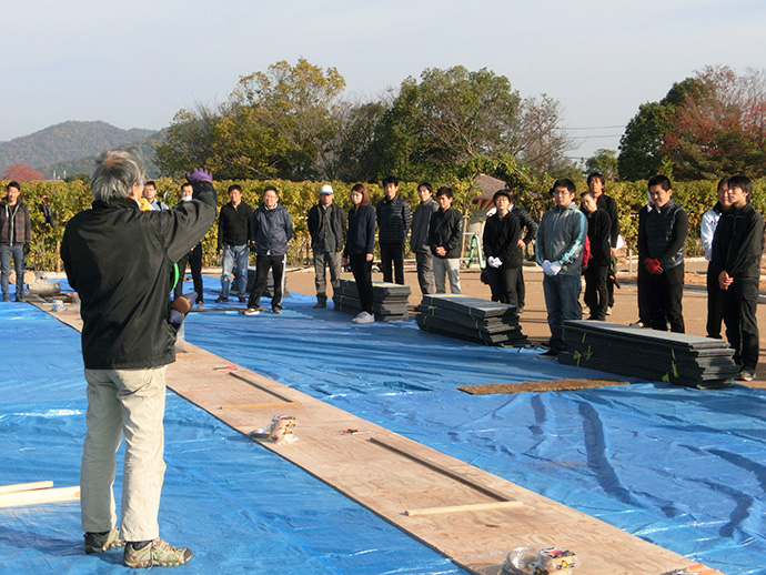 八幡山の紅葉もきれいな11月24日(月)、藤森照信先生による建築ワークショップが行われました。
