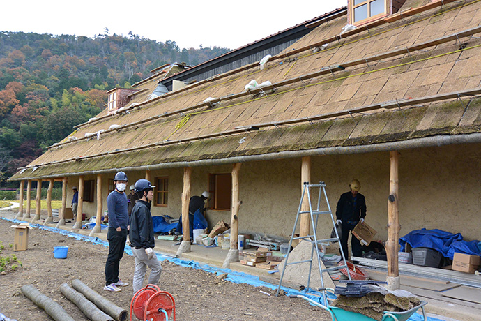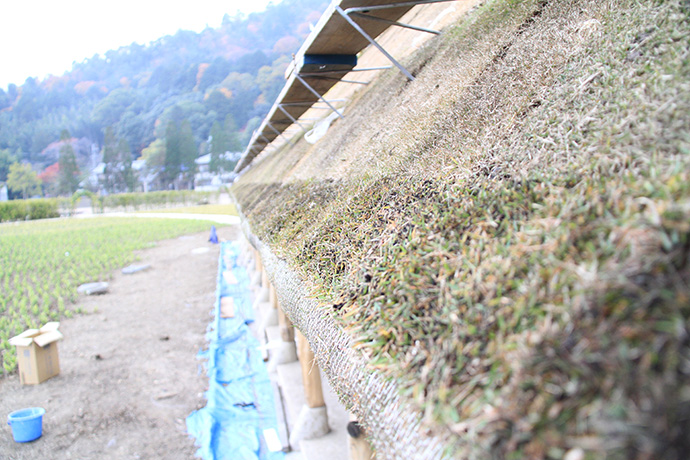 芝ロールが軒先にあることで草屋根の雰囲気もぐっと変わりました。
