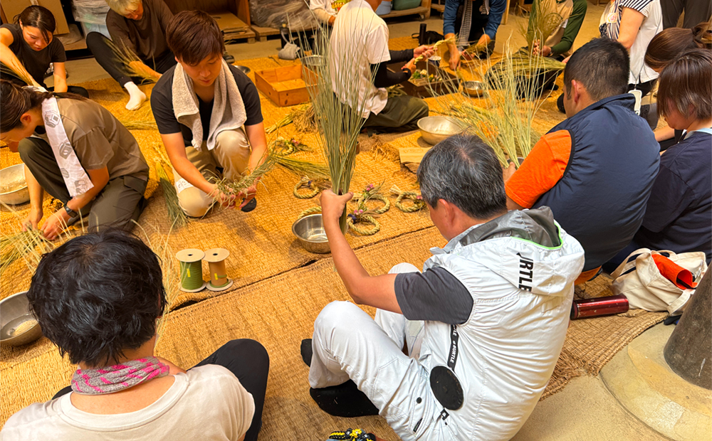 自分の手で作ったしめ縄には、特別な思いが込められます。参加者の皆さんも真剣な表情で編み上げ、それぞれ個性あふれるしめ縄が完成しました。