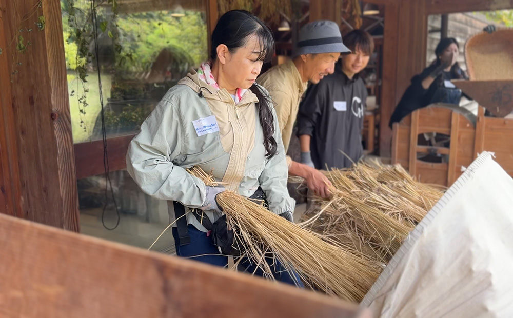 1年間みんなで大切に育てた稲を脱穀、籾摺(もみす)りしていきます。
