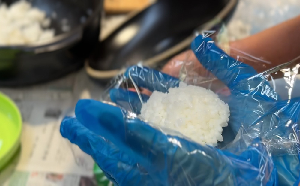 ふっくら炊き上がったお米をみんなで握っていきます。