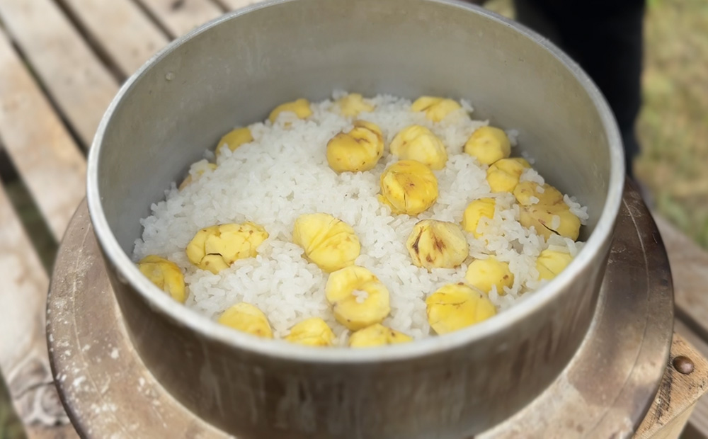 そして、特別にラ コリーナで実った栗が入った栗ご飯や、玄米入りのおにぎりを 山本隆夫グランシェフがみんなのために用意してくれました。