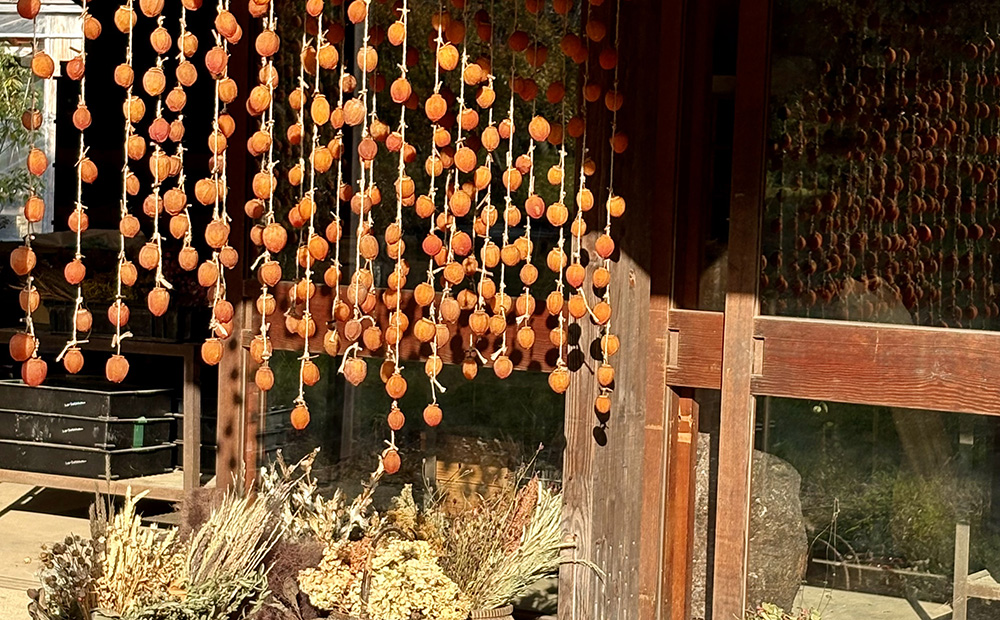 干し柿は味わうだけでなく、ながめて心あたたまる冬のお菓子ですね。