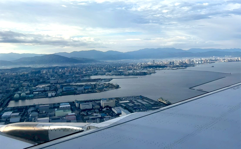 雲の切れ間を抜け、ゆっくりと九州の地が見え始めます。