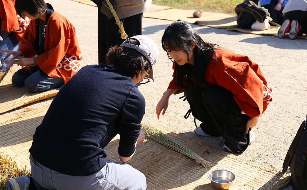前回までの自分なら、プロのように上手に綯う友達と比べて落ち込むだけだったと思います。しかし、今年は上手く綯えないなら他に私ができることをしようと考え、お客さまへのお声がけを全力で頑張ることができました。最初は声出しに緊張しましたが、話しかけてくださるお客さまとの会話を通して徐々に自信がつき、楽しみながら参加することができました。