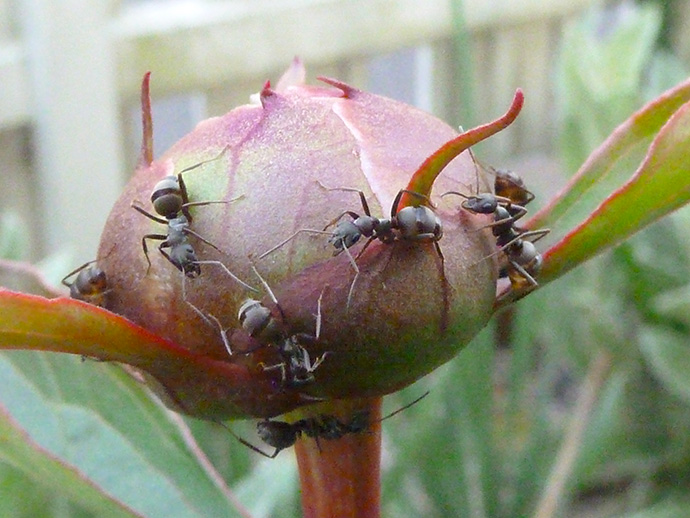 甘いものが大好きなアリは、シャクヤクの花の蕾にもよく集まります。これは蕾が蜜を出しわざわざアリを呼んでいるのだとか。アリがいれば毛虫など他の昆虫が寄ってこないため、ガードマンとして雇っているのだそうです。これは植物とアリの「相利共生(そうりきょうせい)」。守ったり、敵になったり、局面によって多様に関係性を変化させながら、彼らは営みをつづけます。「微妙なバランスの上に成り立っているんですよ、自然界は。」互いに関係しあいながら生きていく“共生”の世界で、アリはわたしたちの大先輩です。