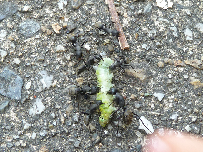 特にアリのスゴイところは、その“高度な社会性”にあるのだとか。行列になって歩いたり、仲間と餌を運んだり、一緒に巣を作ったり…。群れて生きる彼らには「群知能(ぐんちのう)」という性質が働いているそう。これは、個々がバラバラに行動しても全体としての調和がとれるシステム。「“トップダウン”の命令があるわけではなく、アリの世界は“ボトムアップ”です」と教えていただき、人間社会のあり方にも話がおよびました。個性的に動きながら集団としての力を発揮するアリ。彼らから学ぶことがありそうです。