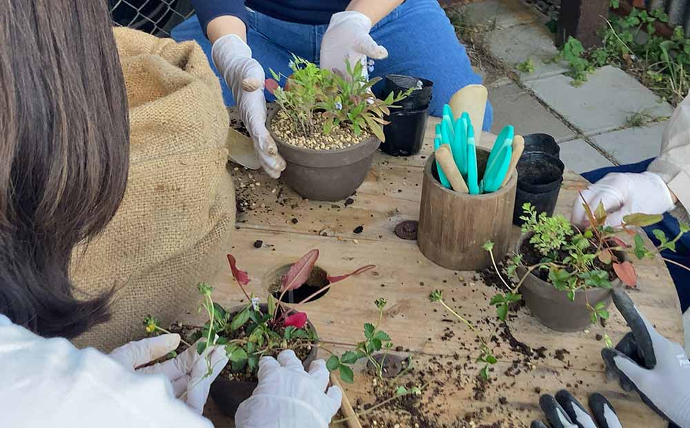 散策で見つけたお気に入りの野草で寄せ植えを体験していただけます。