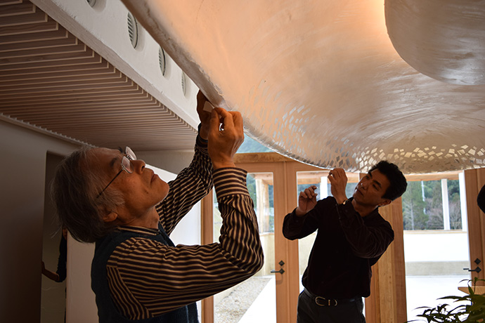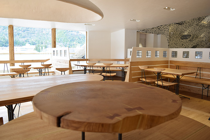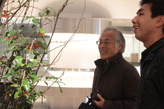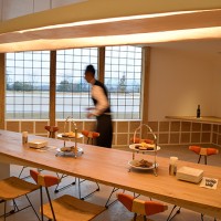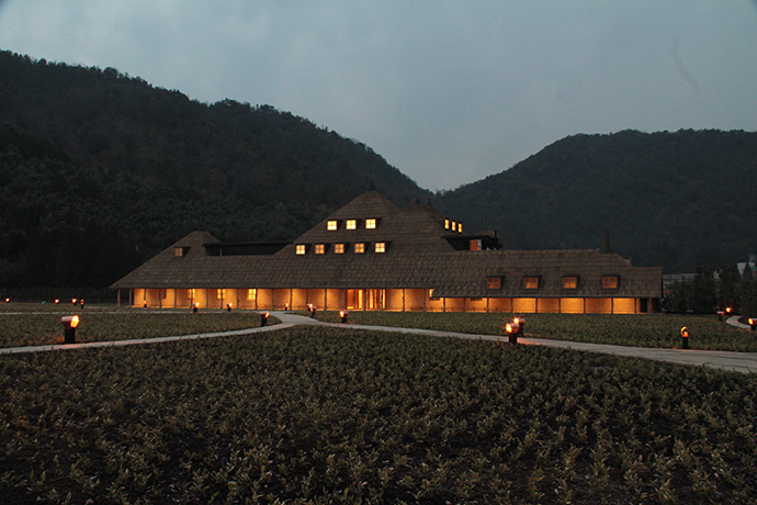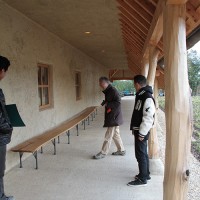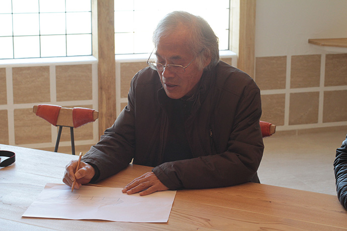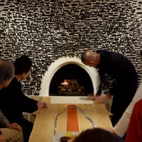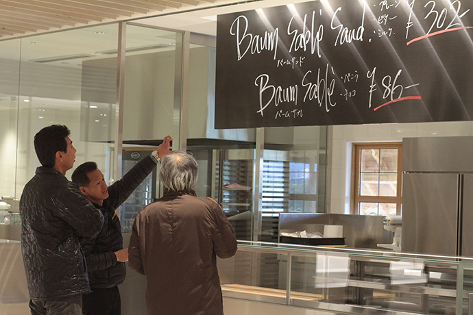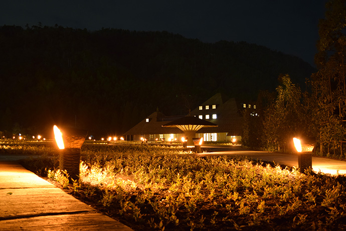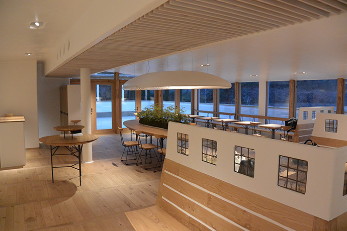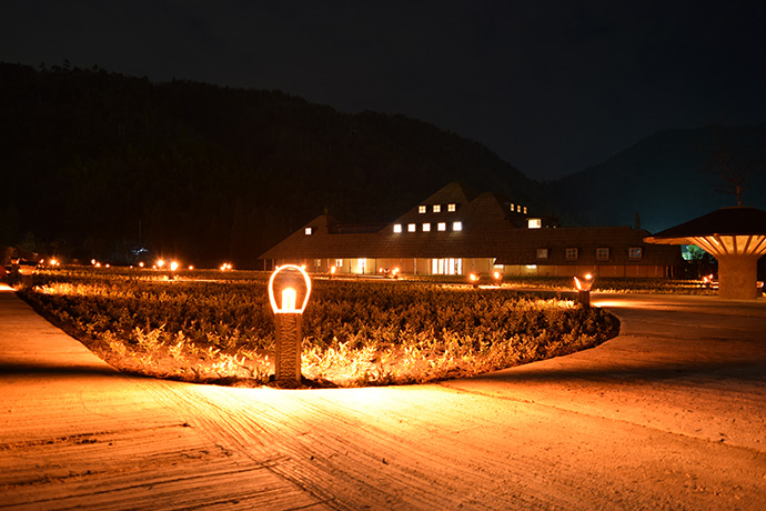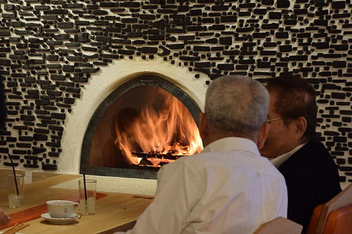 この日はラ コリーナ近江八幡 メインショップの建築設計をされた藤森先生がショップへ来られました。 一通り店周りや店内を確認され、その場で図面を書かれる姿も。 2階のカフェへでは照明に新たな施しもされました。 夕方、2階奥の暖炉に火を入れる「火入れ式」が行われ、建物に息が吹き込まれました。 陽が落ちるとメインショップはライトアップされ、美しく暖かな雰囲気に包まれます。