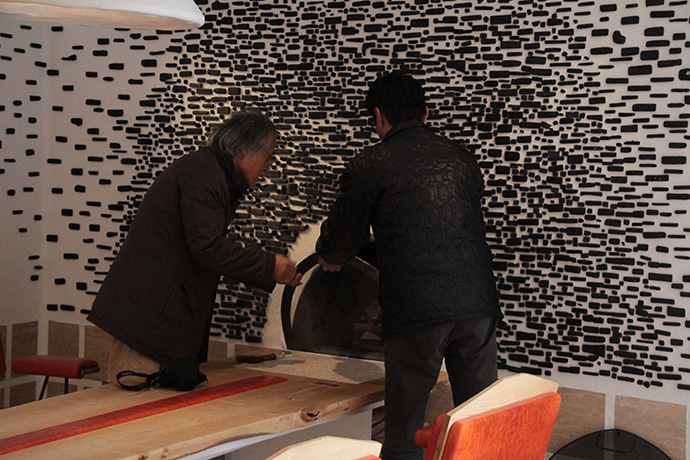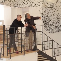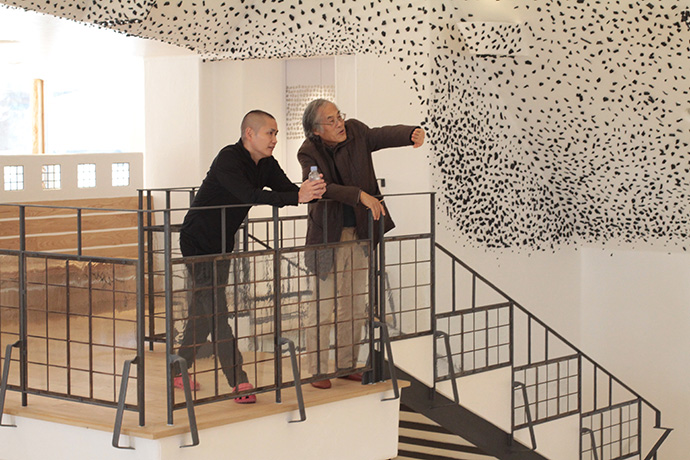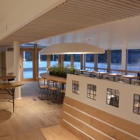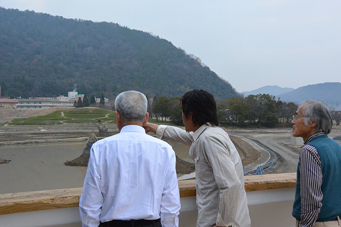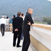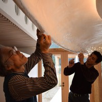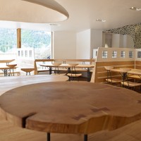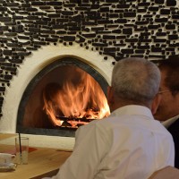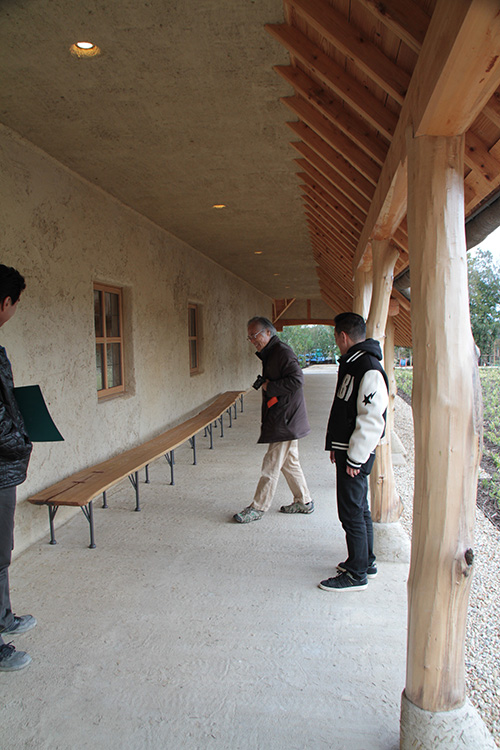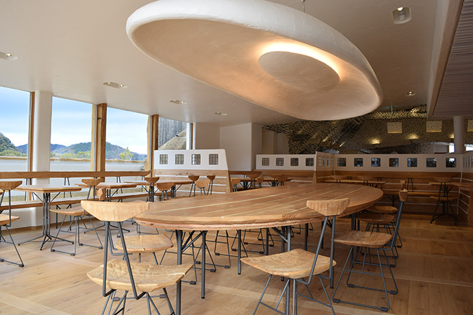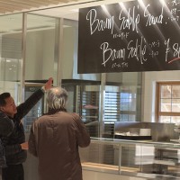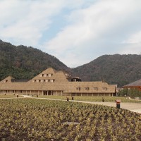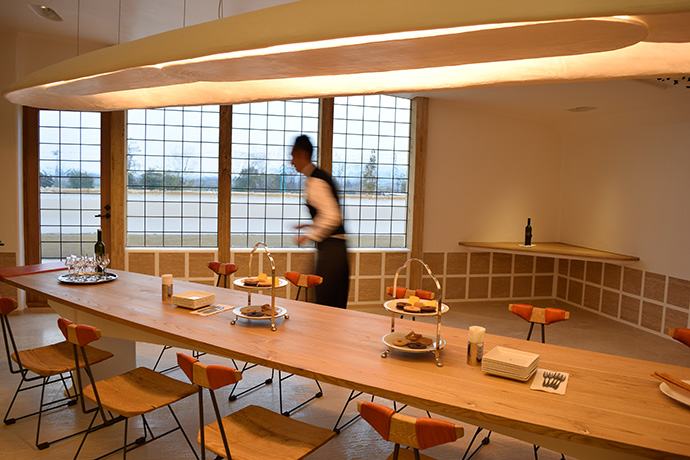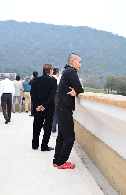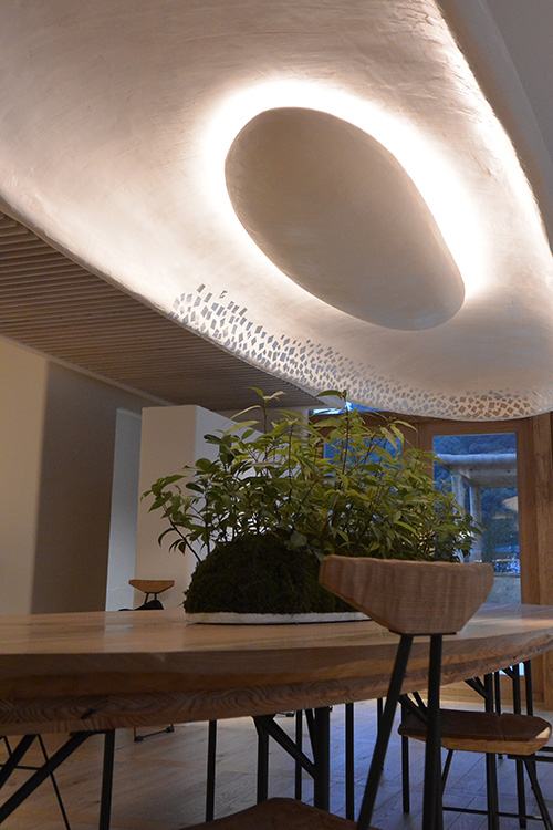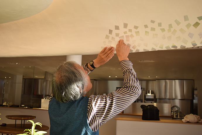 この日はラ コリーナ近江八幡 メインショップの建築設計をされた藤森先生がショップへ来られました。 一通り店周りや店内を確認され、その場で図面を書かれる姿も。 2階のカフェへでは照明に新たな施しもされました。 夕方、2階奥の暖炉に火を入れる「火入れ式」が行われ、建物に息が吹き込まれました。 陽が落ちるとメインショップはライトアップされ、美しく暖かな雰囲気に包まれます。