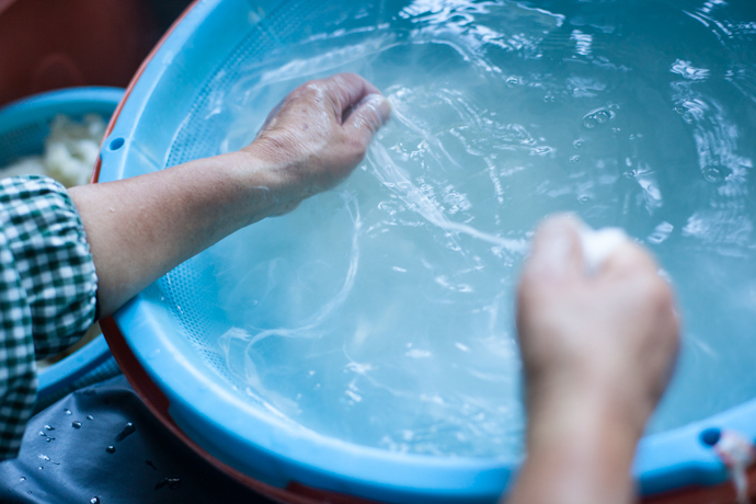 | 堀木 | より不純物のない白い紙を求めるために、職人さんたちが冷たい水に手を浸しながら塵や砂粒をひとつひとつ取りのぞきます。そしてやっと私たちが紙を漉けるんです。すごい人の手と想いが積みかさなって出来上がるものなので、大事に取り付けないといけないし、大事に使っていただけないといけない。ものに対する背景がわかってもらえると、そういう目で見てくださって大事にしてもらえる。するとそれが残っていく。残っていくということは伝統が継承されていくっていうことなので、どの瞬間にも気を抜いてはいけないんですよね。すべて同じ筋で、ぶれずに。どの段階をピックアップしてもそうでなければ本物にはならないんだと私は思います。“想い”ですかね、手づくりのものって。そこに心があるから面白いのです。 |