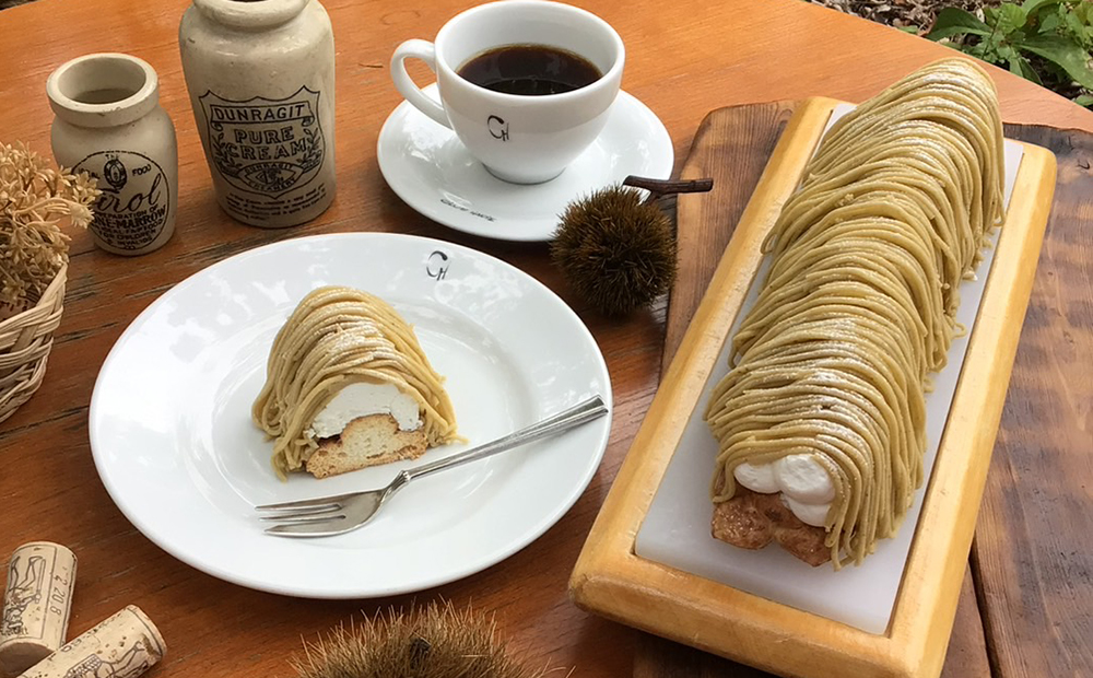 10月は新栗を使ったモンブランのほか、秋の収穫に感謝を込めて作りあげたケーキ、焼き菓子、バームクーヘン、さらに作りたての特別なデザートををご用意しております。