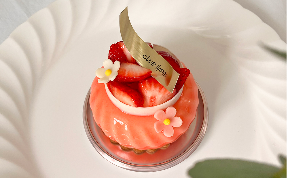 真空状態にして柚子果汁を染み込ませた柚子ピール、フランボワーズ入りの苺ジュレと、果皮入り柚子ピューレでアクセントをつけたクレームに酸味の効いたババロアフロマージュを合わせました。