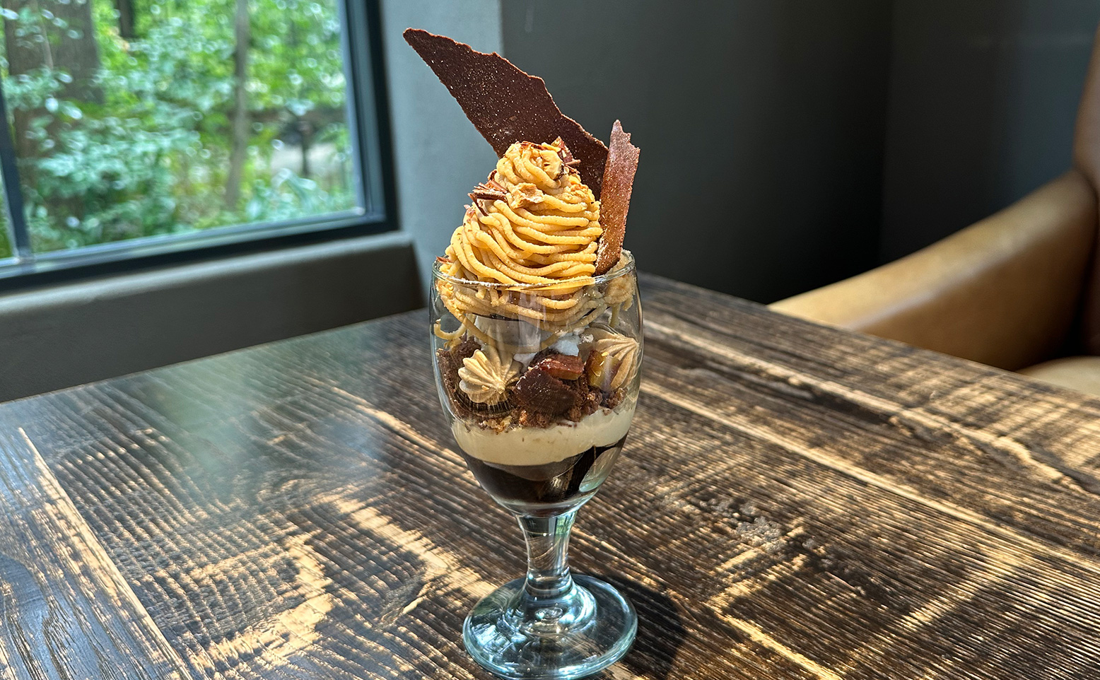福岡県八女産の栗を贅沢に使った栗づくしのパフェ。